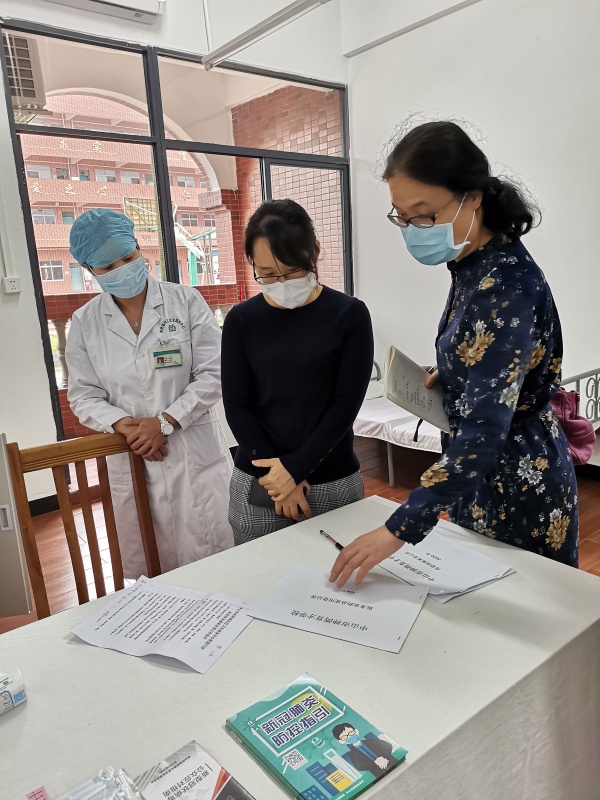 在資料查閱環(huán)節(jié),驗(yàn)收組成員詳細(xì)查閱了防控制度、方案、流程、臺(tái)賬及相關(guān)的培訓(xùn)等資料,并現(xiàn)場(chǎng)與學(xué)校分管領(lǐng)導(dǎo)進(jìn)行溝通反饋。