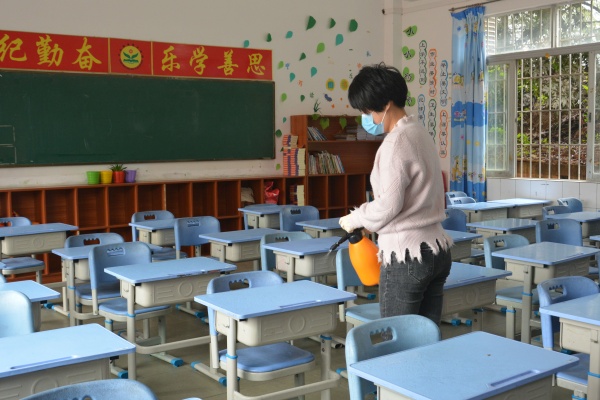 下午放學(xué)鈴聲響后,班主任到班組織學(xué)生放學(xué),乘坐第一輪校車的學(xué)生在課室門前走廊按要求排隊,班主任整隊后有序地帶領(lǐng)學(xué)生到乘車點上車;走讀生聽到放學(xué)鈴后,由班主任整隊有秩序地帶到學(xué)校大門離開學(xué)校;班主任留在課室繼續(xù)組織乘坐第二輪校車的學(xué)生在課室做作業(yè),學(xué)生聽到廣播后排隊到乘車點上車。學(xué)生全部離開學(xué)校后,班主任用含氯消毒劑進(jìn)行噴灑。