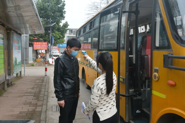 校車出發(fā)前一天下午消毒人員用含有效氯250mg/L—500mg/L的含氯消毒劑進(jìn)行噴灑消毒處理;校車出發(fā)前打開車窗通風(fēng),然后出發(fā)去站點接學(xué)生;校車到達(dá)站點后,跟車?yán)蠋熰嶘P嬌逐一對乘坐校車學(xué)生進(jìn)行體溫測量,發(fā)現(xiàn)李同學(xué)的體溫是37.3度,鄭鳳嬌老師開始對其進(jìn)行問詢,問詢內(nèi)容包括學(xué)生的班別、姓名,以及是否在14日內(nèi)從疫區(qū)返回或途經(jīng)疫區(qū)、或與疫區(qū)回來的人士有過接觸,問完情況后,鄭老師撥打家長電話,由家長到停車點接學(xué)生到醫(yī)院就診,并報告給學(xué)校領(lǐng)導(dǎo),學(xué)校領(lǐng)導(dǎo)層層上報。余校長接到報告后,立刻向神灣鎮(zhèn)急診中心報告。