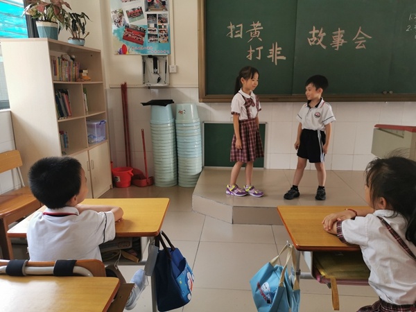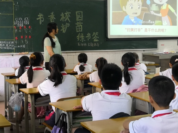 此次“掃黃打非”活動的開展分為幾個部分進行:一、召開以“書香校園·護苗·綠書簽”為題的主題班會活動。班會課上,班主任帶領學生通過觀看視頻、參與師生交流互動、共同參與“我承諾”等活動了解學習“掃黃打非”的重要內(nèi)容。此外,班主任再次強調(diào)“掃黃打非”的重要性,為學生提高安全意識,爭做文明守紀的新時代好少年提供了豐富的思想源泉。二、開展“掃黃打非”故事會活動。學生通過課前查閱相關資料,課上分享身邊故事的形式交流身邊所見所聞。故事會上,“小故事家”講得津津有味,抑揚頓挫,“小觀眾”聽得認真、出神,講完后同學們還會圍坐交流感想,暢談“掃黃打非”的必要性與重要性。三、共學“掃黃打非”常識。學校根據(jù)學生的年齡特點,在校園宣傳欄處刊登通俗易懂的常識,學生們紛紛圍上前去閱讀、學習,并進行分享交流。
