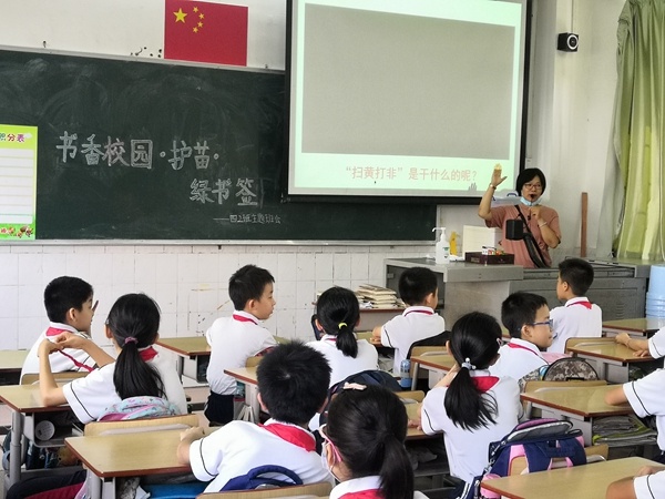 6月29日,石岐高家基小學開展以“書香校園·護苗·綠書簽”為主題的掃黃打非活動。此次活動的開展旨在進一步強化“掃黃打非”切實保護青少年的身心健康,營造積極陽光的校園學習氛圍。