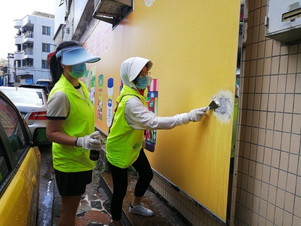 志愿者們利用鏟刀、鋼絲刷、噴壺等工具,認真細致地將道路兩側視野內的路燈桿、公交站牌、沿街墻(樓)體、樹干上等各類亂貼亂畫、小廣告進行全面清理;現(xiàn)場發(fā)現(xiàn)張貼、噴涂行為的人,志愿者會對他們積極教育宣講。在大家的努力下,清除墻體廣告、“牛皮癬”多處。