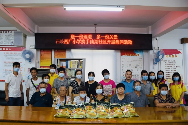 學校送溫暖,真情暖心田。2020年7月8日上午,石岐西廠小學攜手仙湖社區(qū)在該社區(qū)活動中心開展了慰問活動,為仙湖社區(qū)的貧困家庭送上牛奶、燕麥片等慰問品,也送去學校的溫暖關懷及美好祝福。