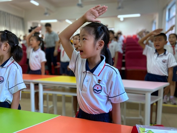 首先,舉行升旗儀式。在雄壯的國歌聲中,同學(xué)們用標(biāo)準(zhǔn)的隊禮,莊嚴(yán)地注視著鮮艷的五星紅旗冉冉升起,心中激蕩著對祖國的自豪與和平時代的感恩。