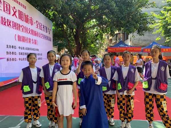 為了助推中山市創(chuàng)建全國文明城市的建設工作,提高群眾對創(chuàng)文的知曉率,讓創(chuàng)文工作深入人心,引導廣大人民群眾當好創(chuàng)文活動的宣傳者、參與者,由中山市人民政府石岐區(qū)辦事處主辦、石岐區(qū)創(chuàng)建文明城市領(lǐng)導小組辦公室協(xié)辦、中山市文化館石岐區(qū)分館、仙湖社區(qū)承辦的“創(chuàng)建全國文明城市?全民齊參與”文藝進社區(qū)活動于2020年7月23日上午9:00-11:30在仙湖正街的健身公園成功舉辦,石岐高家基小學積極參與此次文藝進社區(qū)活動,為附近居民群眾獻上精彩的文藝演出。
