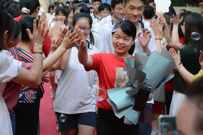 畢業(yè)典禮的高潮是走畢業(yè)門。走過畢業(yè)門,踏上新征程,畢業(yè)生們與老師、家長握手、擁抱,與同學們互贈祝福,留下對母校深深的眷戀,滿載著殷殷祝福、鼓勵,告別老師,告別同學。