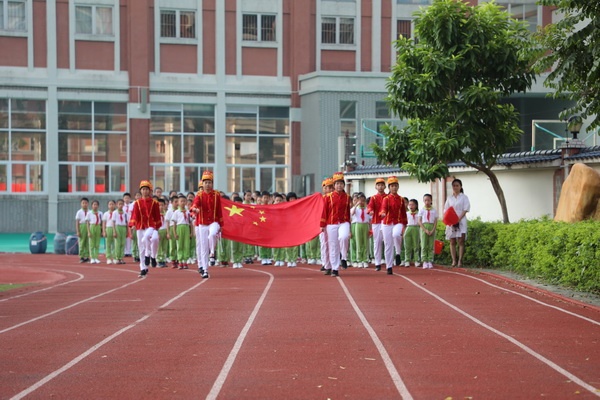 早上7:50分,當(dāng)朝陽灑滿操場時,香暉園小學(xué)的孩子們穿著統(tǒng)一的校服,排著整齊的隊(duì)伍,舉著鮮艷的國旗來到操場。