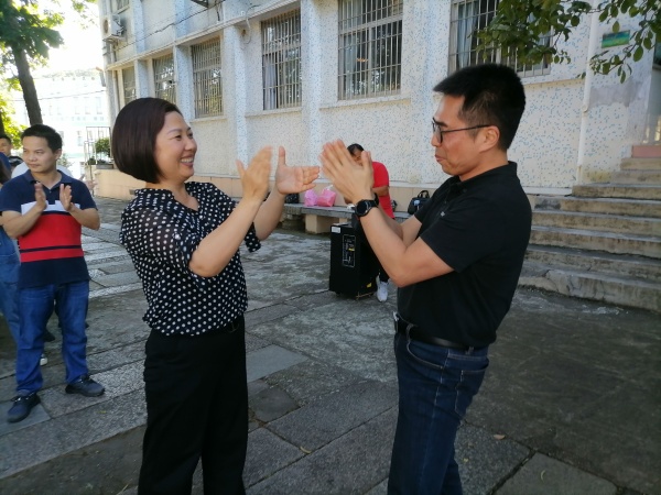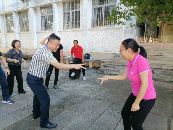在心理老師的帶領(lǐng)下,活動(dòng)開(kāi)始。熱身活動(dòng)“桃花朵朵開(kāi)”營(yíng)造了輕松歡快的氣氛;“大兵步操”活躍氣氛,同時(shí)讓教師們打破疫情下諸多新規(guī)帶來(lái)的不確定感;“為自己鼓掌”讓教師在自我挑戰(zhàn)中樹(shù)立信心;“劃拳接力賽”進(jìn)一步激發(fā)了教師們的熱情,釋放了壓力,使活動(dòng)達(dá)到高潮;最后,全體教師圍成一圈進(jìn)行總結(jié)分享,感染彼此的生命活力,增強(qiáng)了團(tuán)隊(duì)凝聚力。
