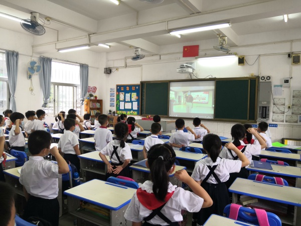 此次入隊(duì)儀式雖然是校園直播分班進(jìn)行,但儀式統(tǒng)一按學(xué)校直播指引全體一年級(jí)一起行動(dòng),入隊(duì)的氛圍卻絲毫不減。各班的孩子們?cè)诎嗉?jí)里收看入隊(duì)儀式,感受入隊(duì)的光榮時(shí)刻。臺(tái)上,兩位小主持人精神抖擻,護(hù)旗手們步伐矯健。教室里,孩子們坐姿端正,莊嚴(yán)肅穆。當(dāng)輔導(dǎo)員黃玲老師宣讀新隊(duì)員名單后,在各班老師有序組織下,為一年級(jí)的新隊(duì)員戴上了鮮艷的紅領(lǐng)巾。當(dāng)新隊(duì)員舉起右拳、許下誓言的那一刻,當(dāng)他們向隊(duì)旗敬起隊(duì)禮的那一刻,孩子們多么驕傲而自豪,多么光榮而又興奮啊!