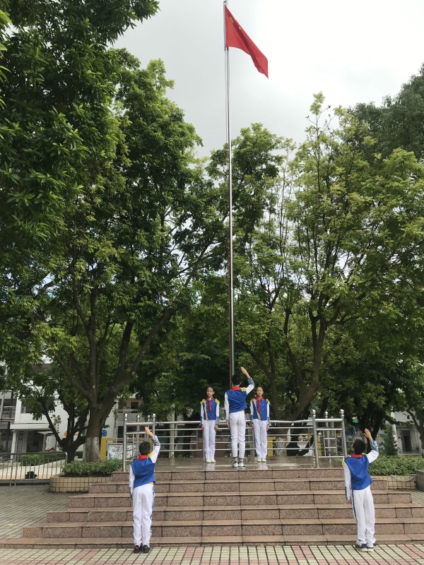 本次升旗儀式由大隊(duì)長(zhǎng)陳欣怡同學(xué)主持,在全體師生的注目禮下,當(dāng)學(xué)校鼓號(hào)隊(duì)的出旗曲響起,護(hù)旗手踏著整齊劃一的步伐,將國(guó)旗護(hù)送至升旗臺(tái),交至升旗手的手中。激昂的《義勇軍進(jìn)行曲》響起,全體注目,少先隊(duì)員行隊(duì)禮,用飽滿的熱情奏唱國(guó)歌,五星紅旗在空中冉冉升起。