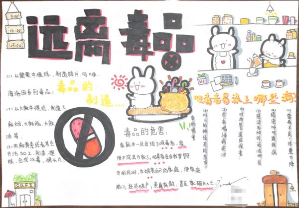 禁毒活動另一個重要方面是手抄報、作文、繪畫作品征集。這次征集活動一共收到禁毒手抄報、繪畫作品150余幅,征文80余篇。經(jīng)過德育處的幾名評委老師的認(rèn)真評選,分別評出了手抄報、繪畫和征文作品一等獎15名,二等獎20名,三等獎30名,優(yōu)秀獎若干名,并為獲獎學(xué)生頒發(fā)了獎狀。