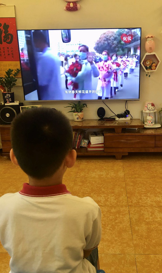 在每個班級的黑板上,班主任早已設計了圖文并茂的歡迎板報。上午第一節(jié),班主任和同學們進行了簡單的互動后,就進入了“復學第一課”的學習。這一課共有兩個內容的學習,第一個是《天使歸來 英雄開講》英雄故事講述。課程通過中山援鄂抗疫英雄第三批醫(yī)療隊隊長陳智偉和中山支援湖北第一批醫(yī)療隊隊員魏翠云兩位抗疫英雄的親身講述,讓同學們真切的感受到醫(yī)護人員和全國人民與新冠肺炎病毒艱苦斗爭的歷程,從中理解英雄的含義,引導學生崇敬英雄、學習英雄。
