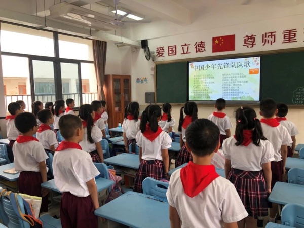 在課堂上,同學(xué)們認(rèn)真地聆聽(tīng)老師的講解,通過(guò)學(xué)習(xí)少先隊(duì)的歷史,激勵(lì)同學(xué)們從小就要養(yǎng)成良好的行為習(xí)慣,一起努力爭(zhēng)做合格的共產(chǎn)主義接班人。接著,學(xué)習(xí)自己佩戴紅領(lǐng)巾、正確佩戴好隊(duì)徽,嘹亮的中國(guó)少年先鋒隊(duì)隊(duì)歌在校園里回蕩。