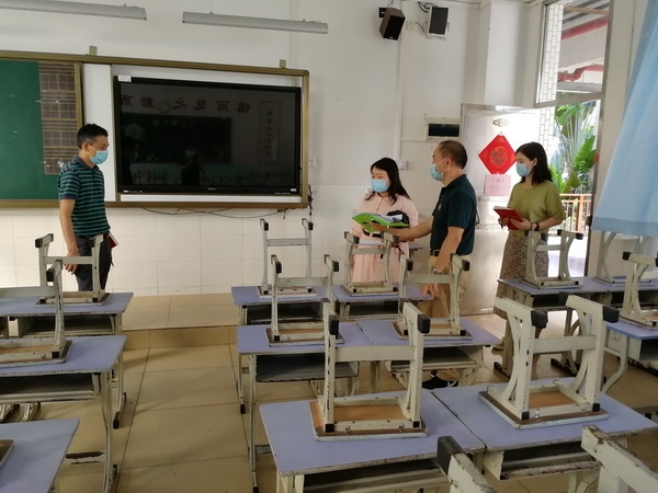 檢查驗(yàn)收工作組一行,首先在學(xué)校入口處接受體溫監(jiān)測、手部消毒,進(jìn)入校園后,分成三組,按照《中山市中小學(xué)校幼兒園學(xué)生返校準(zhǔn)備工作驗(yàn)收表(第二版)》開展驗(yàn)收工作。實(shí)地查看了健康觀察室、防控物資儲(chǔ)備室、教室、食堂等重要場所,深入了解學(xué)校防控物資儲(chǔ)備、復(fù)課后師生返校流程、應(yīng)急處置、消毒消殺等工作的安排落實(shí)情況,對學(xué)校的復(fù)學(xué)相關(guān)制度、全體師生員工健康檔案、教育教學(xué)工作安排等資料進(jìn)行了仔細(xì)查閱。