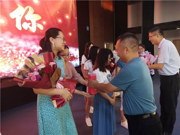 第二環(huán)節(jié)是歡送下一年度交流輪崗教師,教師代表首先為交流輪崗教師獻花、合影留念,然后由學校劉剛毅副校長發(fā)言,劉校長對即將交流輪崗教師的工作給予了充分肯定,對他們?yōu)閷W校教育教學工作做出的貢獻表示感謝,同時希望老師們能以高度的責任感和使命感,認真對待交流輪崗工作,為開發(fā)區(qū)教育的發(fā)展,繼續(xù)貢獻自己的力量。