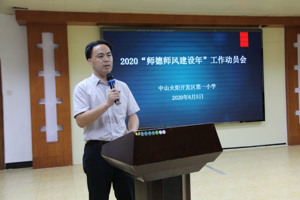 為進一步加強學校教師職業(yè)道德建設和教師隊伍管理,規(guī)范教師的職業(yè)行為,增強廣大教師以身示范、規(guī)范從教、樂于奉獻的責任感和使命感,爭做“有理想信念、有道德情操、有扎實學識、有仁愛之心”的“四有”教師,開發(fā)區(qū)第一小學積極落實上級精神,將2020年作為學?!皫煹聨燂L建設年”。為確保師德師風建設工作落實到位,2020年6月8日,開發(fā)區(qū)第一小學在綜合電教室舉行了2020年“師德師風建設年”動員大會,全體教師參與了此次會議。