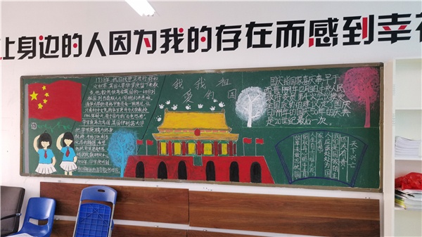只見各班級的精彩黑板報,或色彩豐富、圖文并重;或故事感人、文稿長短輕重相聯(lián);或設(shè)計大氣、標(biāo)題富含深意。各班級的創(chuàng)作可謂特色鮮明。在多個班級的黑板報中,看到紅旗、中國龍、天安門的元素大量出現(xiàn)。運用這些元素,是對祖國文化、歷史的認同,深刻地體現(xiàn)了開發(fā)區(qū)一中學(xué)生的愛國情、報國志。本次黑板報評比活動,達到了預(yù)期的效果,取得圓滿成功。