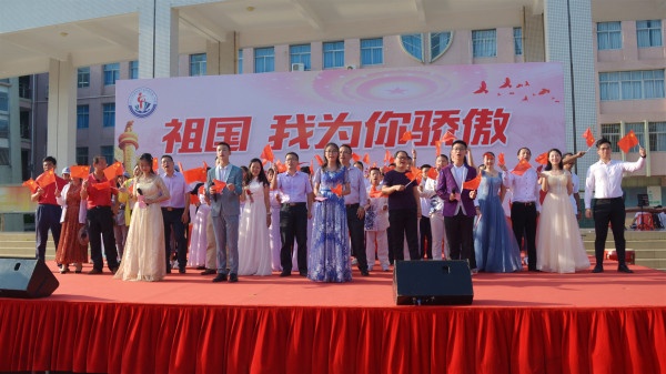 最后,全校師生合唱《歌唱祖國》,將慶祝新中國成立70周年文藝匯演的氣氛推向高潮,歌聲響徹云霄,在世紀一路上空久久回蕩。