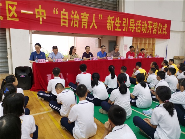 為了讓初一新生更好的融入學(xué)校,迅速成為擁有自主意識(shí)的開(kāi)發(fā)區(qū)一中的一員,順利地完成小升初的過(guò)渡,2019年9月2日,開(kāi)發(fā)區(qū)一中開(kāi)展為期一周的“自治育人”新生引導(dǎo)活動(dòng)。這個(gè)由開(kāi)發(fā)區(qū)一中自行設(shè)計(jì),學(xué)校老師與初二、初三學(xué)生共同落實(shí)的活動(dòng),在新學(xué)期開(kāi)學(xué)當(dāng)天正式開(kāi)營(yíng)。