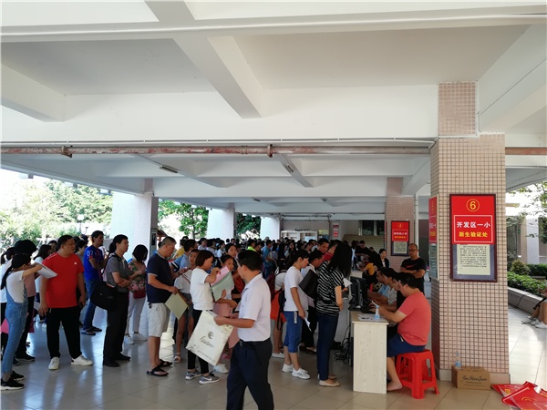 6月15日,火炬開(kāi)發(fā)區(qū)一中啟動(dòng)2019年初一新生現(xiàn)場(chǎng)資料驗(yàn)證工作。來(lái)自區(qū)一小、區(qū)二小、區(qū)五小、區(qū)六小、區(qū)中心小、香暉園小學(xué)、育英學(xué)校、卓雅外國(guó)語(yǔ)學(xué)校和紀(jì)中三鑫凱茵學(xué)校畢業(yè)的火炬開(kāi)發(fā)區(qū)戶籍應(yīng)屆畢業(yè)生,以及大嶺、宮花、窈窕村股民的小學(xué)應(yīng)屆畢業(yè)生子女,在火炬開(kāi)發(fā)區(qū)一中參加本年度的資料驗(yàn)證。