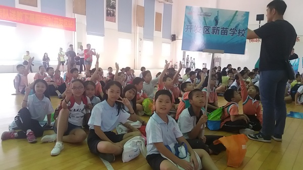 9月29日上午9:00,在開發(fā)區(qū)體委的指導(dǎo)下,新苗學(xué)校組織學(xué)生參加開發(fā)區(qū)首屆青少年游泳公開賽。這次比賽,科組內(nèi)積極籌備,賽前充分動員,報(bào)名工作進(jìn)展順利,講解注意事項(xiàng),強(qiáng)調(diào)安全第一,各項(xiàng)準(zhǔn)備工作充分,確保運(yùn)動員安心參賽。由張昆、周麗杏兩位體育老師帶隊(duì)到香暉園小學(xué)參加比賽。