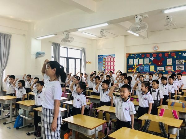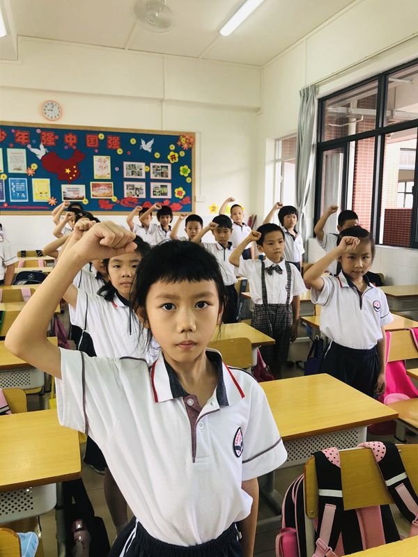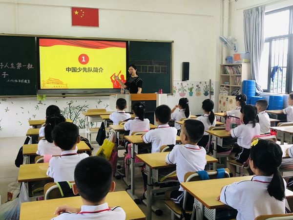 各中隊(duì)輔導(dǎo)員制作了精美的課件,為同學(xué)們?cè)敿?xì)介紹了隊(duì)名、隊(duì)旗、隊(duì)徽、隊(duì)標(biāo)志、隊(duì)禮、隊(duì)歌、呼號(hào)等有關(guān)少先隊(duì)的知識(shí),理解了“先鋒”一詞的含義,還就中國(guó)少年先鋒隊(duì)光榮的歷程等知識(shí)作了解讀。同學(xué)們認(rèn)真地學(xué)習(xí)敬隊(duì)禮,學(xué)習(xí)呼號(hào),學(xué)習(xí)戴紅領(lǐng)巾,跟著老師讀誓詞,稚嫩的聲音里透著堅(jiān)定,緊握的拳頭顯示著信心;唱隊(duì)歌,唱一唱《少年先鋒隊(duì)隊(duì)歌》——“我們是共產(chǎn)主義接班人,繼承革命先輩的光榮傳統(tǒng),愛(ài)祖國(guó),愛(ài)人民,鮮艷的紅領(lǐng)巾飄揚(yáng)在前胸……”為了加入自己夢(mèng)寐以求的少先隊(duì),孩子們個(gè)個(gè)都精神飽滿,在老師的指導(dǎo)下群情激昂,高唱著隊(duì)歌。一張張純真的小臉流露著孩子們對(duì)隊(duì)組織的向往和崇敬,清脆的童聲表達(dá)著孩子們即將成為少先隊(duì)員的自豪和喜悅,也流露著他們加入少先隊(duì)組織的堅(jiān)定決心;敬隊(duì)禮,需要充分發(fā)揮家庭的作用,學(xué)校與家庭密切配合,要求每個(gè)同學(xué)在入隊(duì)前做一件好事。內(nèi)容豐富的隊(duì)前教育,使一年級(jí)新生初步了解了少先隊(duì),讓他們擁有少先隊(duì)生涯的美好開(kāi)端,也培養(yǎng)了他們的組織意識(shí),增強(qiáng)了作為一名少先隊(duì)員的強(qiáng)烈歸屬感和自豪感!