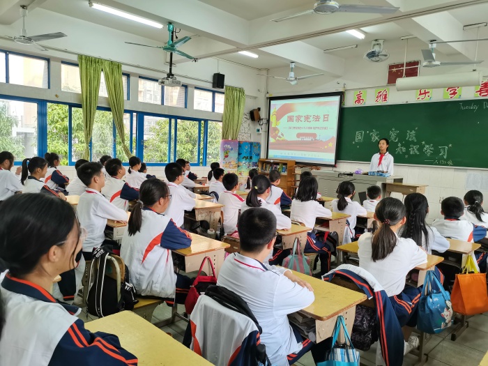 活動(dòng)中,各班老師首先向同學(xué)們介紹了“國(guó)家憲法日”的來歷和意義,然后通過一系列具體的數(shù)據(jù),表明了青少年違法犯法形勢(shì)的嚴(yán)峻。接著,老師還向大家介紹了一些具體的案例,在案例里同學(xué)們更清楚地認(rèn)識(shí)到青少年走上犯罪的途徑和原因。在具體的案例里,大家還認(rèn)識(shí)到青少年犯罪的量刑,知道了青少年犯罪所負(fù)刑事責(zé)任的類型,對(duì)憲法關(guān)于青少年犯罪有了更具體的了解。最后,老師鼓勵(lì)同學(xué)們要識(shí)法守法護(hù)法,只有“健康現(xiàn)在才能幸福未來”。全校師生進(jìn)行了憲法日的宣誓儀式,同學(xué)們承諾學(xué)習(xí)憲法知識(shí),維護(hù)憲法權(quán)威,為建設(shè)富強(qiáng)、民主、文明、和諧的社會(huì)主義國(guó)家努力奮斗。