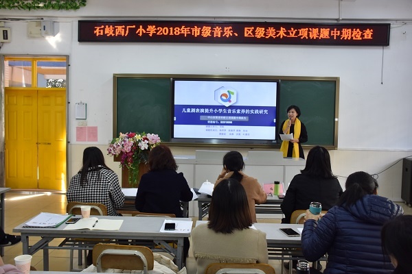 接著,課題主持人鄧娟向專家老師們作《兒童劇表演提升小學生音樂素養(yǎng)的實踐研究》的課題中期報告。她從課題工作方案、實施情況、階段性成果、經(jīng)費使用情況及存在的問題和下一步的努力方向都進行了詳細的陳述和匯報。