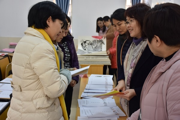 首先,四位專家老師們對課題的階段性成果材料進行詳細檢查。專家老師們一邊翻閱課題資料、一邊與課題組成員互動交流,深度研討。在課題個案資料中,陳再玲老師對如何有序進行收集、整理、分析、歸納等作出了專業(yè)性的指導意見。如:課題組成員所在的四所學校應分年段整理課題特色個案,其中教師與學生可以相結合;又如校本課程的編寫可以從校內、課內、社團中形成系列化,讓課題資料更加充分、更有高度、更具價值。