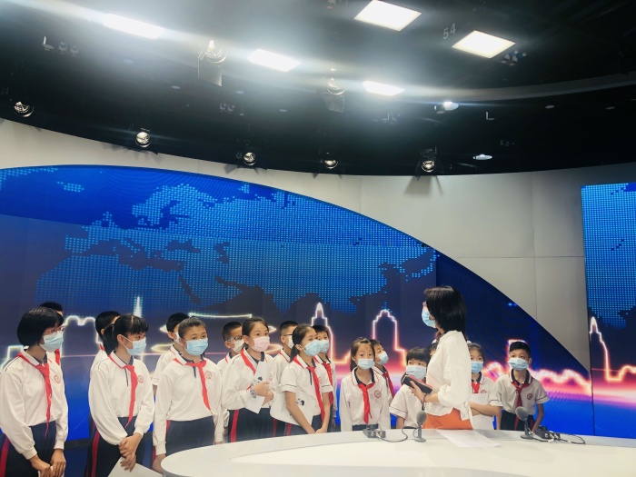11日18日下午,白云繾綣,風(fēng)兒悠悠,天氣晴好,中山市石岐西廠小學(xué)五(2)聲潤童心班的同學(xué)們在班主任陳敏老師和黃芷悅、李小梅及朱偉紅老師的帶領(lǐng)下,前往中山廣播電視臺參觀體驗。此次活動旨在讓同學(xué)們探秘現(xiàn)代化高科技演播平臺,零距離體驗播音主持,了解配音的小技巧,開闊眼界,增長見識。
