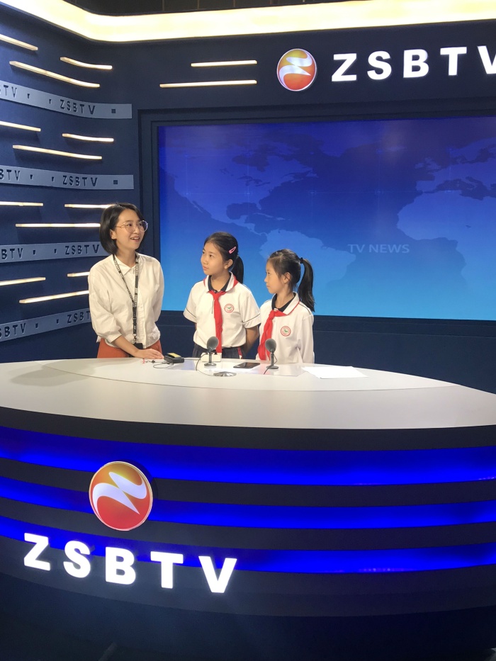 接著,志玲姐姐帶領(lǐng)大家來到城市零距離演播廳,熱情地介紹了演播大廳的組成以及電視節(jié)目的制作過程,同學(xué)們聽得津津有味。當(dāng)志玲姐姐邀請每個同學(xué)都來體驗當(dāng)主播時,同學(xué)們紛紛躍躍欲試。坐在電視臺主持人平時主持節(jié)目的位置,面對著攝像機(jī),看到對面兩個屏幕上出現(xiàn)自己的樣子,他們既緊張又期待。在志玲姐姐耐心又專業(yè)的指導(dǎo)下,孩子們的鏡頭感,主持范兒漸漸顯現(xiàn),完成了在中山電視臺進(jìn)行的人生第一次主播秀!看到小伙伴的身影在電視臺錄播間的屏幕上出現(xiàn),就像真正的主持人一樣,同學(xué)們都覺得十分新鮮、奇妙。