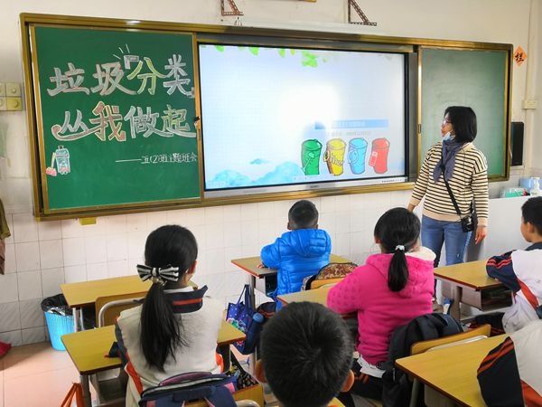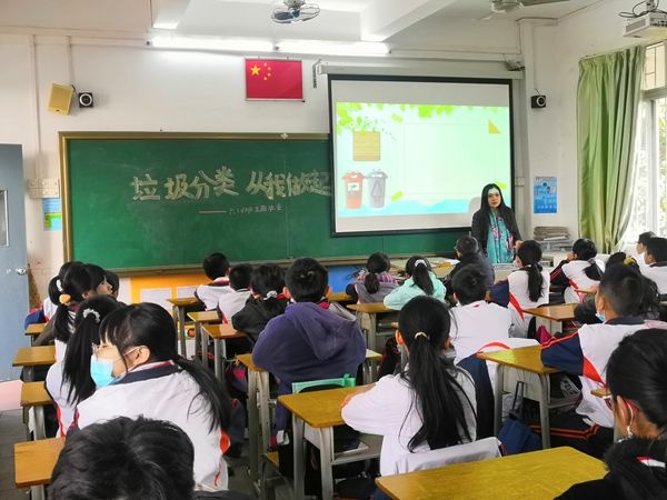 班會(huì)課堂上,老師們?cè)⒔逃跇?lè),扎實(shí)開展環(huán)保教育,通過(guò)豐富多樣的方式為學(xué)生傳授垃圾分類知識(shí),讓學(xué)生了解垃圾分類的意義。首先,班主任們通過(guò)視頻讓學(xué)生們了解現(xiàn)在環(huán)境污染的嚴(yán)重性,垃圾分類的迫切性。然后,班主任講解了垃圾分類的相關(guān)知識(shí),生活中產(chǎn)生的垃圾的種類,可回收垃圾的利用價(jià)值,有毒垃圾的危害,讓學(xué)生了解生活垃圾的分類方法。有的班級(jí)教師以提問(wèn)、小游戲等多種教學(xué)手段,生動(dòng)地為學(xué)生們展現(xiàn)如何區(qū)分可回收垃圾、有害垃圾、廚余垃圾、其他垃圾;有的班級(jí)教師以實(shí)際事例向?qū)W生展示如何讓“廢物”得以再利用,教育學(xué)生能在日常生活中主動(dòng)、自覺(jué)地進(jìn)行垃圾分類,愛護(hù)我們共同的家園。
