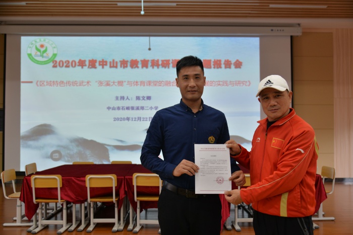 最后,三位專家充分肯定了張溪鄭二小學教育科研的濃厚氛圍和教師們的科研精神與能力,高度認可本課題研究的對于區(qū)域傳統(tǒng)武術“張溪大棍”傳承與推廣的重要性、對學風校風效果的顯著性、研究價值能起到獨特性的參考價值。并提出了深入的、有針對性的的指導意見。溫劉軍老師、史良老師、李濤教授三位專家分別從課題的意義、前景給予了精準點評、高度肯定與滿懷期待,也對課題的規(guī)范、實施方法、特色提煉、成果呈現(xiàn)方式與內(nèi)容提出了細致到位意見和建議,讓課題組成員收獲滿滿,感受到做科研的嚴謹性和有趣性,為課題研究的開展指明了方向。期間,石岐區(qū)張溪股份合作經(jīng)濟聯(lián)合社關沛樟書記也從課題研究開展的深度、廣度、意義深表滿意與感動,當場表示將會繼續(xù)全力支持本課題的研究工作、將會更加不留遺力為傳統(tǒng)武術“張溪大棍”文化向中山市申請非物質(zhì)文化遺產(chǎn)。