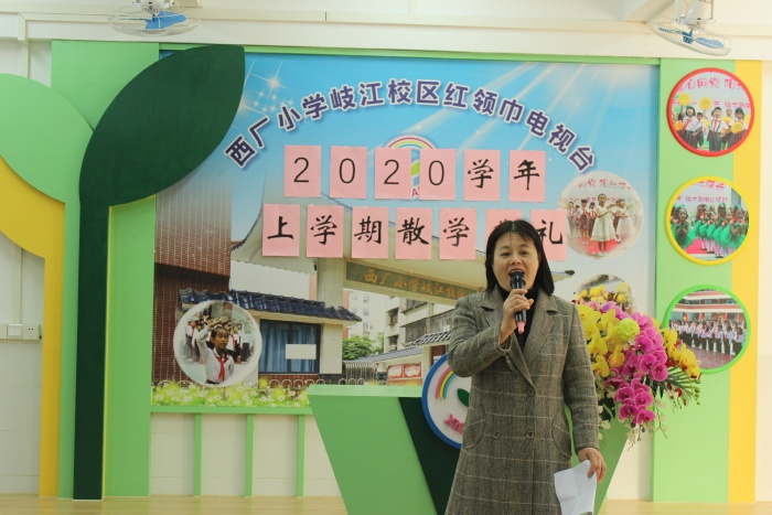 在散學(xué)典禮上,石岐西廠小學(xué)楊翠萍校長(zhǎng)首先進(jìn)行了總結(jié),她說(shuō),2020年,是不平凡的一年,走過(guò)了不平凡的2020年,同學(xué)們變得更加堅(jiān)強(qiáng),更加懂得感恩,大家一步一個(gè)腳印茁壯成長(zhǎng)!全校師生給一個(gè)學(xué)期的努力畫(huà)上了一個(gè)完滿的句號(hào)。她教育同學(xué)們不忘初心,再接再厲,再創(chuàng)輝煌。