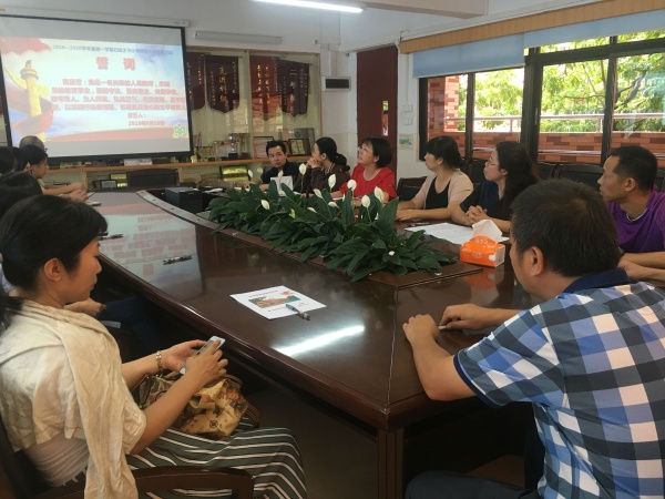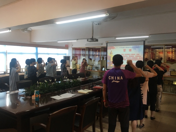 教師節(jié)慶?;顒釉趯W校的會議室舉行,由鄭結(jié)霞校長主持?;顒拥牡谝粋€內(nèi)容是進行“自覺愛國守法,潛心教書育人”為主題的師德主題教育月啟動儀式。在啟動儀式下,鄭結(jié)霞校長師德教育月的啟動意義做了深刻的說明,然后帶領全體老師進行了莊嚴的宣誓。宣誓結(jié)束后,為真正落實師德主題教育活動的精神,全體老師簽訂了師德承諾書。