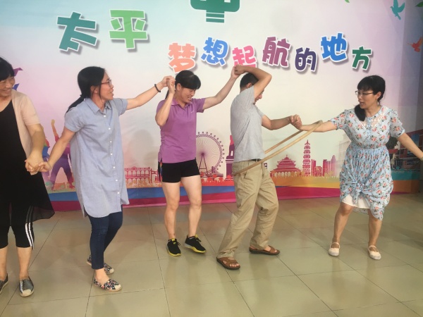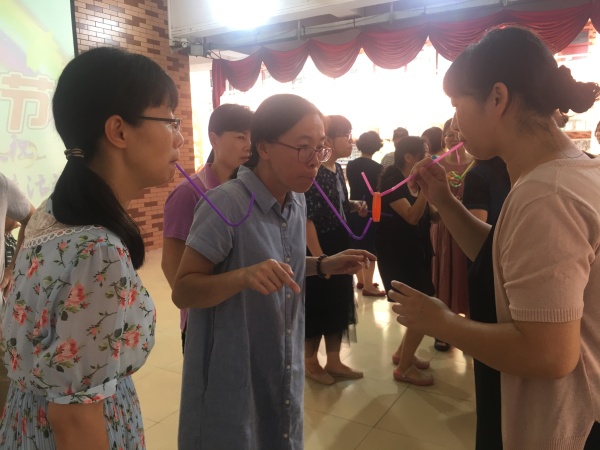 活動的第二個內(nèi)容是在學校的小舞臺舉行慶中秋趣味活動。在小舞臺上,老師們一改這幾天開學的疲態(tài),個個精神抖擻?;顒佑膳私芨敝魅沃С?。此次的趣味運動會共設2個活動項目,一個是 “心心相印”的吸管傳圈,另一個是“愛心傳遞”的傳呼拉圈?;顒舆^程熱鬧非凡,整個小舞臺都充滿了歡聲笑語,引得旁邊的學生和家長都樂不可支。