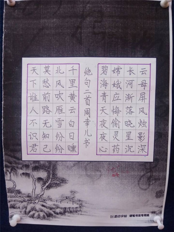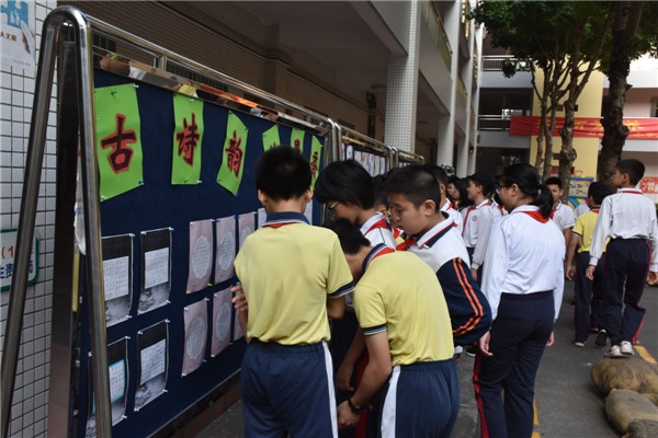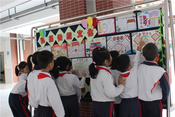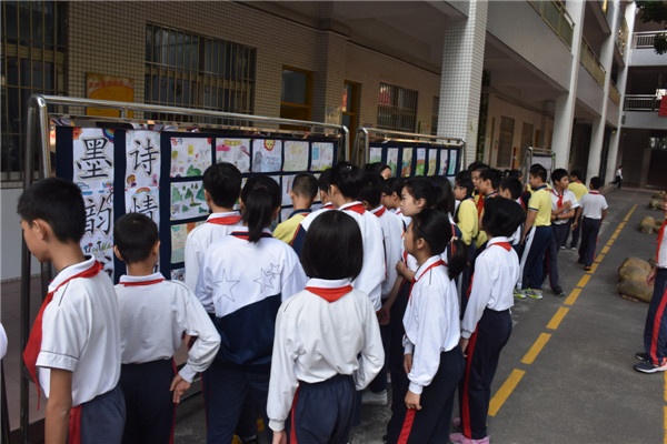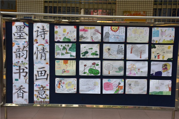 校園里的靚麗展板吸引了不少同學駐足觀看。在老師們的精心指導下,二年級同學制作的傳統(tǒng)文化手抄報圖文并茂,引來一批又一批同學津津有味地品味;三四年級同學的古詩配畫作品精彩紛呈,同學們在詩情畫意中反復品評、流連忘返;五六年級同學的獲獎書法作品展覽展示了各班書寫能手的風采,同學們在觀賞比較中找到自己的差距,也找到了學習的榜樣。