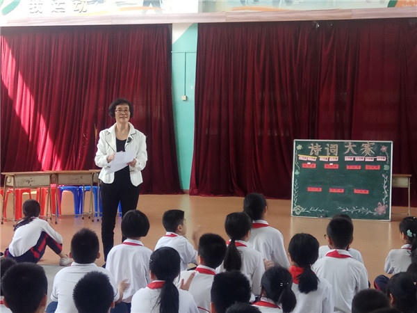 語文是基礎的基礎,是學習好其他科目的根基。校園是弘揚和傳承中華民族優(yōu)秀文化的主陣地。該校本次語文周活動內容豐富、形式多樣,分高中低年級進行。一、二年級舉行誦讀弟子規(guī)、古詩背誦比賽,小同學們在你追我趕的比賽中初步感知中華文化的魅力;三四年級的同學在抽讀課文比賽中展示了誦讀水平,五六年級同學則進行了詩詞大會,臺上臺下緊張投入,高潮迭起?!笆熳x唐詩三百首,不會作詩也會吟”,誦讀經典對學生成長的潛移默化作用不言而喻。