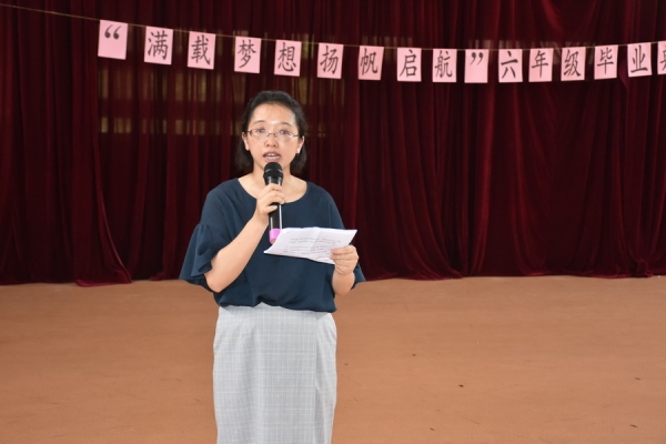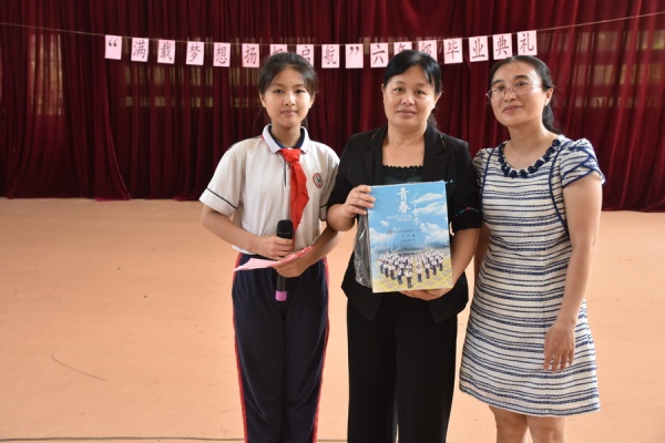 在典禮上,該校楊翠萍校長(zhǎng)為全體畢業(yè)生作了熱情洋溢的講話,向?qū)W生們提出了殷勤的期望。她希望全體畢業(yè)生勤于學(xué)習(xí),善于創(chuàng)新,努力成才。年級(jí)組長(zhǎng)朱麗飛代表六年級(jí)全體師生給學(xué)校贈(zèng)送了三個(gè)班級(jí)的畢業(yè)相冊(cè)。之后,楊校長(zhǎng)為畢業(yè)生頒發(fā)了畢業(yè)證書(shū),祝賀同學(xué)們順利畢業(yè)。接著,家長(zhǎng)代表的一番肺腑之言,表達(dá)了對(duì)學(xué)校的感謝、對(duì)孩子們的期盼;教師代表的深情致辭,把六年的深情化為縷縷清風(fēng),為學(xué)生們拂去疲勞,送上了最溫情的祝福。
