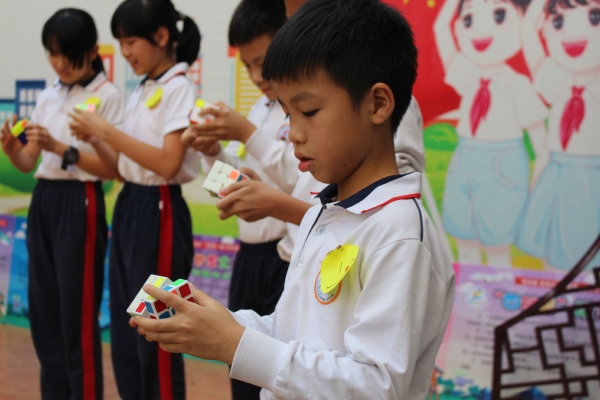 在閉幕式上,梁炳根校長對孩子們的創(chuàng)造熱情給予了鼓勵,充分肯定這一年的科學教育工作。在這一年里,孩子們樂于想象、勇于創(chuàng)新,用自己的思維火花換來了豐厚的收獲。學校分別對在科技活動中表現(xiàn)突出的創(chuàng)意學生、創(chuàng)意班級、創(chuàng)意教師和科創(chuàng)之星做了表彰和獎勵。緊接著,魔方小高手們帶來了一場精彩的競技秀,贏得了同學們的陣陣掌聲。在全校師生熱烈的倒數(shù)聲中,二十只飛魚號飛機齊刷刷地飛向天空,夢想和熱情瞬時釋放!萬眾期待的科技體驗活動正式開始了!