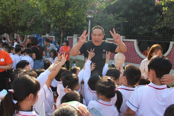 寬闊的操場兩側,整齊的地陳列著各個科學體驗攤位。一班一特色,全校19個班級的體驗主題各不相同,由家長擔任講師。一(3)班的家長帶領孩子們認識人體器官;三(1)班的家長正和孩子們普及垃圾分類的知識;四(3)班的家長則讓孩子們在制造干冰的快樂中了解干冰的原理……這次體驗活動還得到了政府工作部門和社會科技公司的支持。中山市科學館把昆蟲標本搬到石岐第一城小學,流動科學館讓孩子們連連稱奇;中山市市場監(jiān)督管理局把食品安全帶進校園,讓孩子們在輕松的互動中關注自己每天的飲食安全。華工啟明星有限公司、樂貝塔機器人公司、玖印科技有限公司分別向孩子們展示了最前沿的科學技術。孩子們游走在琳瑯滿目的展示攤位中,收獲了知識也收獲的快樂。