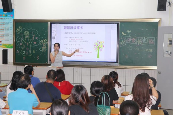 家長會最后的議程,是各班的科任老師與家長溝通交流。老師們把握機會,會前做了充分準備???!各班喜慶的板報、精美實用的課件、耐心的講解、家長專心聆聽,構(gòu)成了一幅和諧的圖畫。