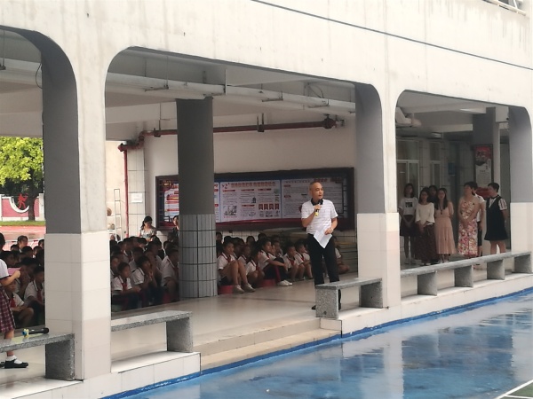 第二項(xiàng)梁校長(zhǎng)致詞,梁校長(zhǎng)在講話(huà)中回顧了石岐第一城小學(xué)上學(xué)年取得的一系列可喜的成績(jī),讓大家看到了累累的碩果,接著校長(zhǎng)又作了題為《熱愛(ài)生命 積極鍛煉》的致辭,用實(shí)際溺水案例告訴學(xué)生身體健康和生命安全的的重要性,之后梁校長(zhǎng)提到暑假期間學(xué)校進(jìn)行了設(shè)施設(shè)備的規(guī)范完善,學(xué)生們?cè)诟袊@的同時(shí)也沉浸在享受學(xué)校新環(huán)境中。梁校長(zhǎng)還告訴大家除了學(xué)校更換了面貌,新學(xué)期學(xué)校也迎來(lái)了14位新教師,一一介紹后,學(xué)生們也用熱烈的掌聲歡迎了自己的老師,最后梁校長(zhǎng)希望同學(xué)們積極主動(dòng)閱讀課外書(shū),努力增長(zhǎng)才干,鍛煉能力,做一個(gè)關(guān)心生活、關(guān)心他人、關(guān)心未來(lái)的優(yōu)秀少年!