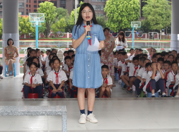 第三項(xiàng)新教師莫晴雯代表新入職的教師做了發(fā)言,莫老師代表全體師生表示在新的學(xué)期里好好學(xué)習(xí)、努力工作。