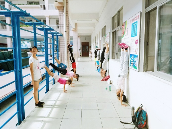 自8月份廣東省第十五屆省運(yùn)會(huì)結(jié)束后,一批老隊(duì)員向?qū)W校提出退役的申請,只剩下本校的8名隊(duì)員。9月份中旬,在學(xué)校體育主管梁主任的發(fā)動(dòng)和組織下,通過孩子的自主報(bào)名,從二至五年級中選拔出30多名孩子進(jìn)行訓(xùn)練,使技巧隊(duì)伍得以充實(shí)壯大??山酉聛眈R上就要參加10月21日在江蘇沛縣舉行的全國技巧賽了,短短的一個(gè)月時(shí)間里,蔡陳老師犧牲國慶假期的休息,帶領(lǐng)隊(duì)伍練基本功,編排舞蹈動(dòng)作,晚上還得加班選編音樂......突破各種困難,學(xué)校技巧隊(duì)如期到達(dá)江蘇沛縣參加本次全國賽。