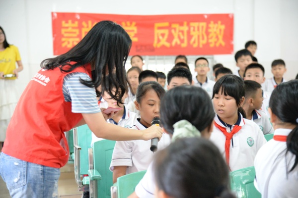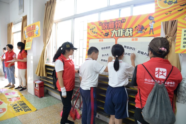 學校邀請了中山市社會工作者協(xié)會協(xié)助開展普法活動,四年級全體師生積極參與。工作人員根據(jù)小學生的心理發(fā)展特征告誡學生抵制不良行為,遠離違法犯罪,樹立正確的世界觀、人生觀和價值觀,現(xiàn)場氣氛活躍?;顒觾?nèi)容主要有兩個環(huán)節(jié),一是觀看3個“憲法在我心中”和2個反邪教主題宣傳教育視頻,這兩個專題各有兩次有獎問答。答對后學生可以得到一份神秘小禮品。第二個環(huán)節(jié)是進行法治嘉年華游戲。本次法治嘉年華總共有5個游戲,分別是“反邪教大作戰(zhàn)”、“打擊犯罪 人人有責”、“法律猜猜猜”、“法治大轉(zhuǎn)輪”、“掃黑除惡大沖關(guān)”。通過游戲的方式進行法律知識問答競賽,既考驗學生的法律知識,也考驗班級團隊協(xié)作能力。