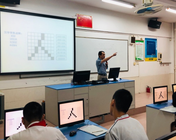 依據(jù)2019年中山市新的中考方案,2018年秋季入學的初一級學生,要實行新的考核方案,其中信息技術是考核科目之一,考試方式是機試和機評。中山市信息技術題庫建設勢在必行,與教材相接軌,源自于日常教學,這必然對日常教學和期末評定提出新的要求。石岐區(qū)初中信息技術教研組多次討論研究決定,九年級第三單元內容充實,理論性強,對充實題庫具有現(xiàn)實意義。北區(qū)中學陳緒淼老師主講《信息編碼與數(shù)據(jù)存貯》,啟發(fā)中學鄧石紅老師主講《常用媒體信息在計算機中的表示》,選用的是啟發(fā)中學初二學生,兩節(jié)課均理論性較強,引導學生探究信息技術工作原理和信息科技的奧秘。為增強理論知識的趣味性,鄧石紅老師引入微課教學法,把音視頻數(shù)字化的過程及編碼原理、數(shù)據(jù)壓縮的算法原理均形象生動地展現(xiàn)在學生面前;陳緒淼老師借助手控電筒的方式來講解計算機的存貯原理,引入數(shù)位的概念。課堂上老師們用學案或問卷星的方式檢測學生掌握情況。兩堂思維嚴謹?shù)男畔⒓夹g課堂,讓啟發(fā)中學的學生大開眼界,這是一趟啟迪智慧的課堂之旅。