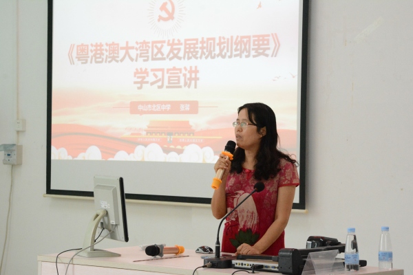 5月23日,北區(qū)中學(xué)舉辦培訓(xùn)班,學(xué)習(xí)貫徹《粵港澳大灣區(qū)發(fā)展規(guī)劃綱要》(下稱《綱要》)。培訓(xùn)班邀請(qǐng)中山市黨代表張馨老師主講,全體黨員教師32人參加。