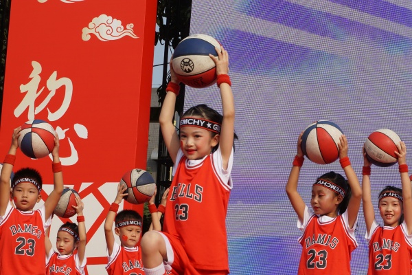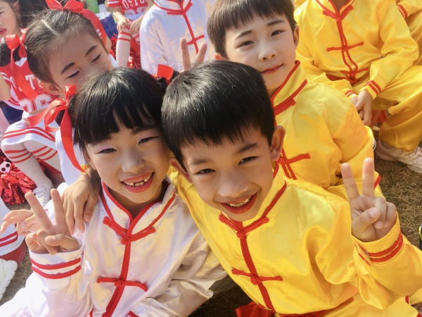 “新時代向我們招手,新時代向我們呼喚!不負偉大新時代,我們童心共筑中國夢!”一二年級以“童心共筑中國夢 活潑快樂我最棒”為主題,輪番展示充滿活力的武術、啦啦操、軍體拳、戲劇廣播體操等精彩節(jié)目。孩子們穿上少數民族服飾表演舞蹈《愛我中華》,表達了56個民族是一家的民族自豪感。“站如松,坐如鐘,行如風,臥如弓……”低年級孩子們帶來的武術表演虎虎生威!多個班級的“運動健兒”們?yōu)榇蠹規(guī)韯痈惺愕睦怖膊?。他們在展示中融入了乒乓球、羽毛球、籃球、足球等體育運動元素,靈動的身姿如同精靈般翩翩起舞,匯成一片片歡樂的海洋!活力四射的表演點燃了師生們的運動激情,寄托了同學們建設體育強國的信心與決心!