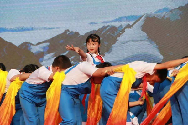 “我們立志從小學先鋒,長大做先鋒!”五六年級以“爭當新時代先鋒 堅毅品質我牢記”為主題,弘揚英雄模范的先進事跡!在舞臺上,同學們展示了鄧世昌、馮如、錢學森、袁隆平、屠喲喲、郎平等前輩為國爭光,克難攻堅、銳意進取的愛國故事,立下“銘記前人貢獻,努力為國爭光”的決心!“紅軍不怕遠征難,萬水千山只等閑!” 長征精神是中華民族不屈不撓精神的典范。同學們穿上紅軍服,演繹紅軍在爬雪山、過草地、巧渡金沙江、飛奪瀘定橋等長征途中的堅強意志,再現一幕幕“百折不撓、自強不息”的革命樂章,傳承紅軍長征留下的寶貴精神財富!星空浩瀚無比,探索永無止境。中國載人航天工程不斷邁出新步伐,激勵著同學們堅定航天強國信念,傳承和弘揚“兩彈一星”精神、航天精神,創(chuàng)造更多中國奇跡!